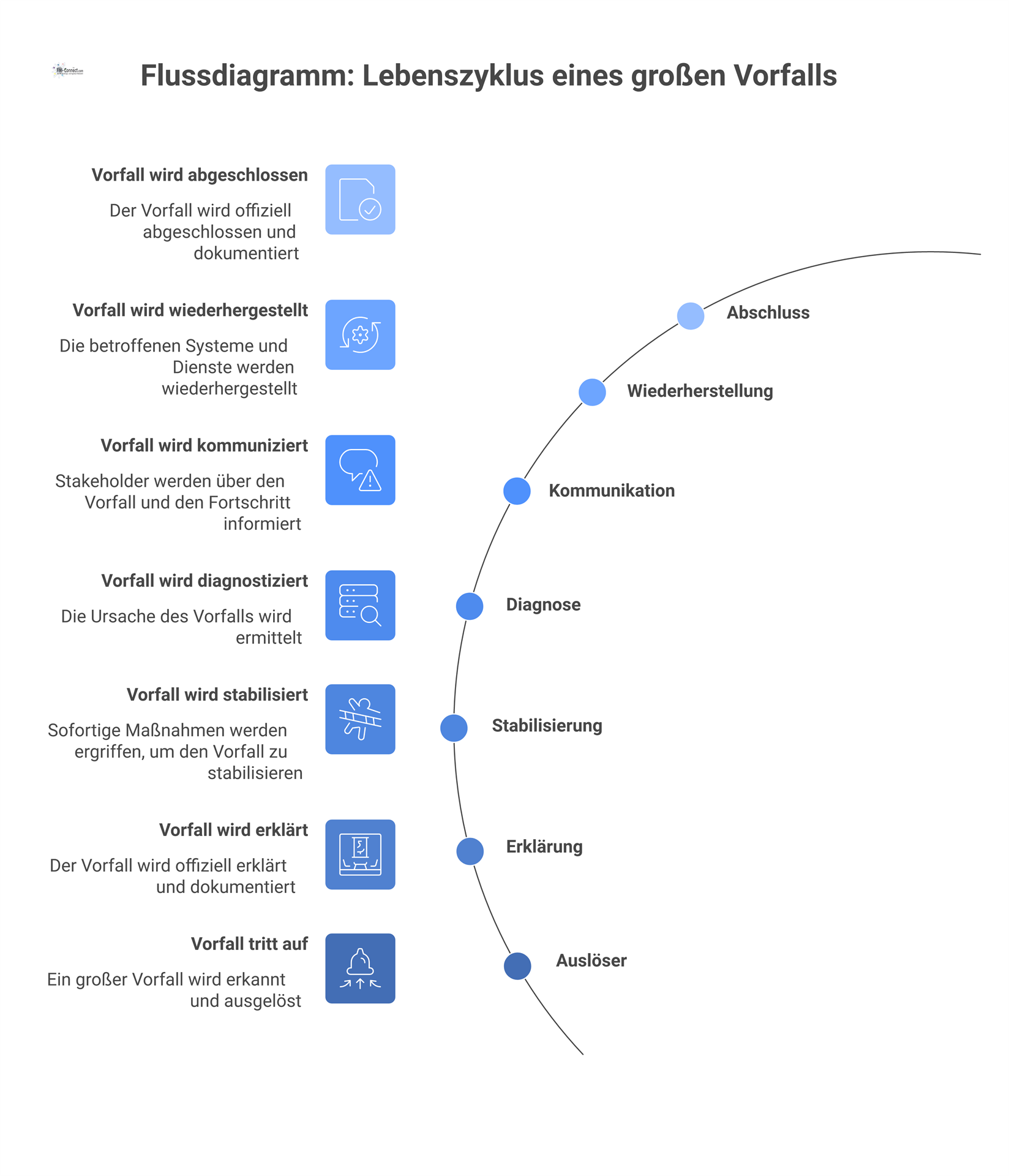 Schwerer Vorfall: Hochkritischer Fehler mit erheblichen Auswirkungen (Sicherheit, Verfügbarkeit, kritische Infrastruktur, Produktionsausfallzeit); erfordert ein eigenes Handbuch, eine klare Führungsstruktur und eine Nachuntersuchung mit Ursachenanalyse (RCA).